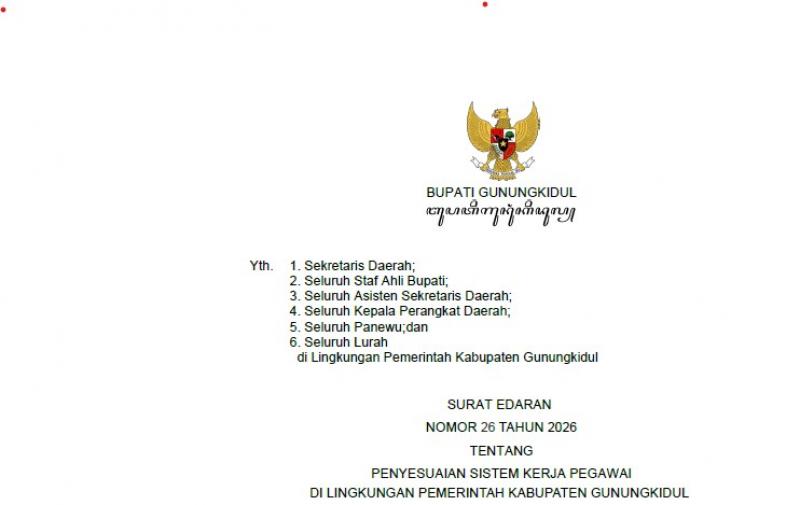 "Penyesuaian ini bertujuan untuk menciptakan budaya kerja yang lebih adaptif dan efisien tanpa mengurangi kualitas pelayanan publik kepada masyarakat Gunungkidul," tulis poin pengantar dalam edaran tersebut.
